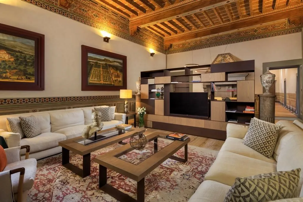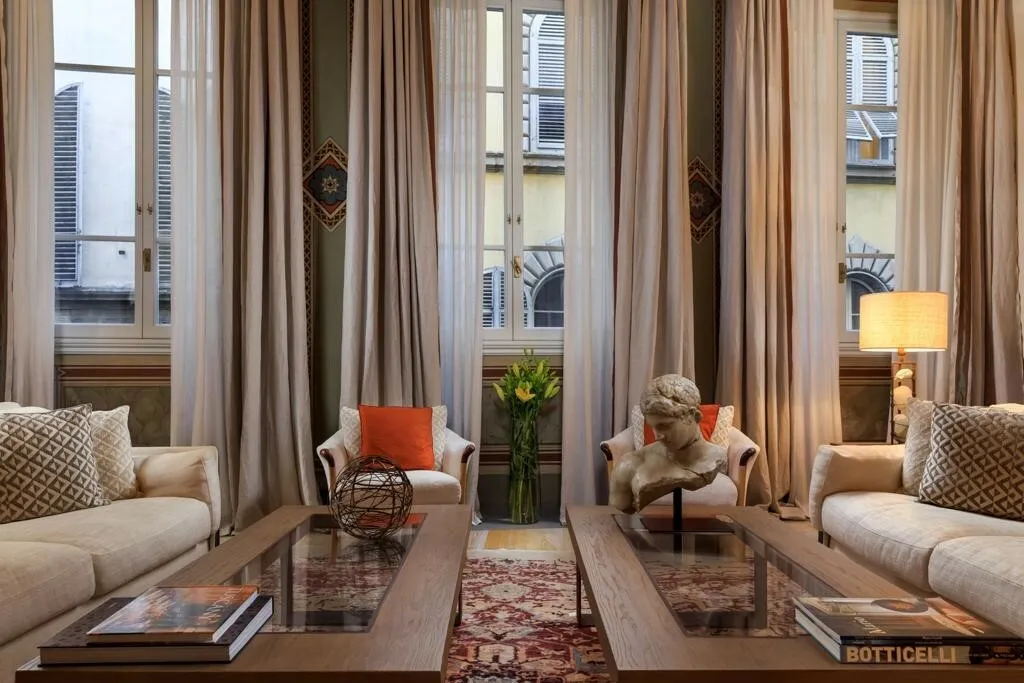 A large, beautifully furnished 3 bedroom apartment with terrace, exceptionally available in one of the most exclusive areas of the historic center of Florence, along the Arno River and a short walk from Ponte Vecchio. A truly unique house: the property is located in a noble palace and has been expertly restored to the highest standards. Was renovated in 2020. An elegant luxury property, true to its heritage.